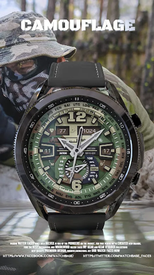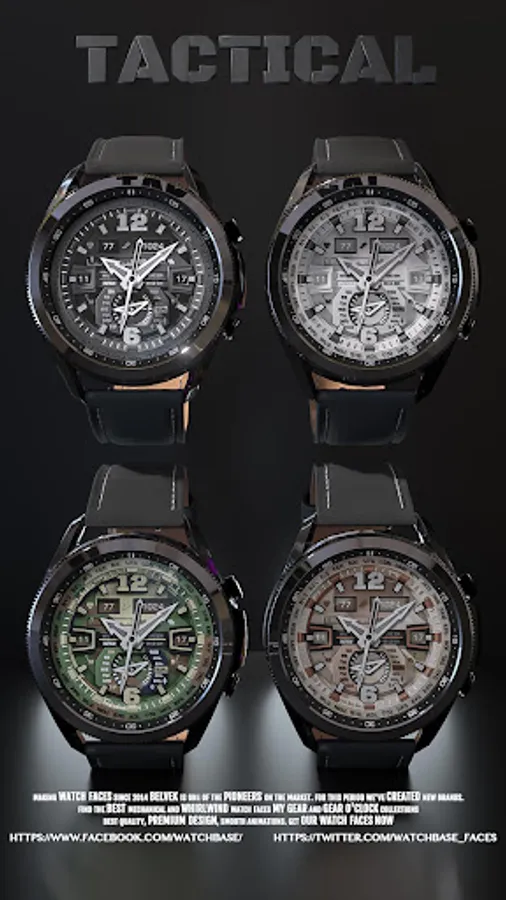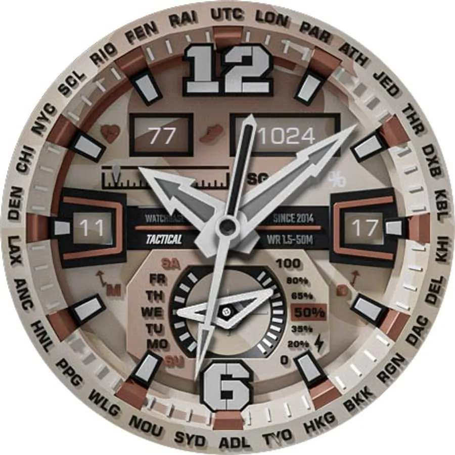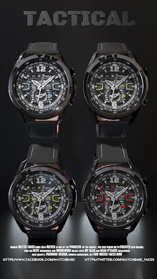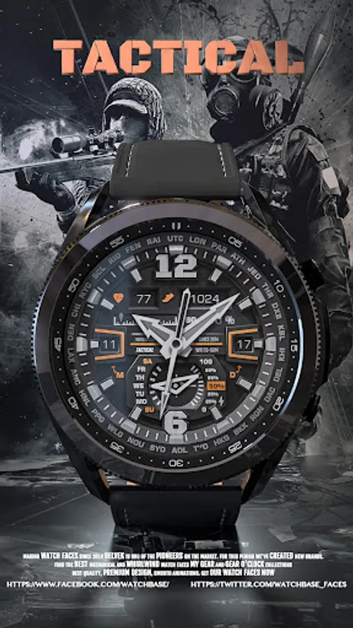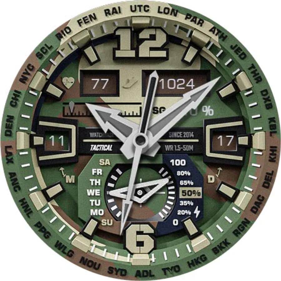 Crisp and clear to read tactical watch face for Wear OS with 10 color themes.