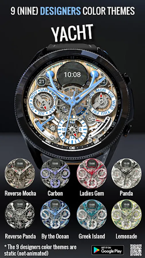 - 9 color variations for the main watch hands (hour, minute, seconds)