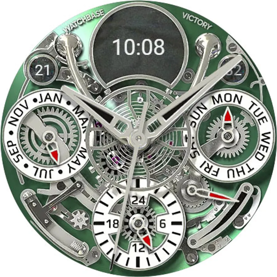 - 10 color variations for indicator hands (month, day of week, 24h clock)