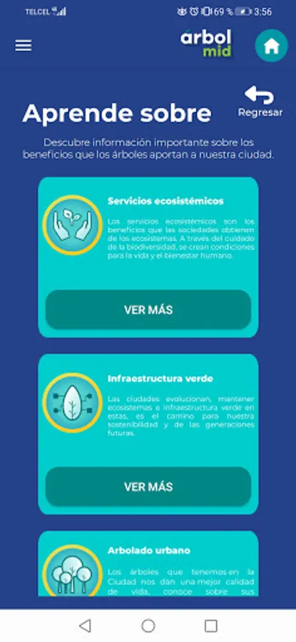 This application offers data on trees in the city of Mérida Yucatán as well as information on various species, their correct care and benefits to the population.