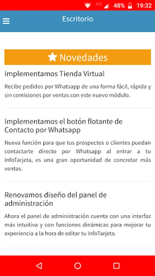 It currently has different functions such as an informative section, Image Gallery and Create a Virtual Store with which you can receive all your customers' orders on your WhatsApp.