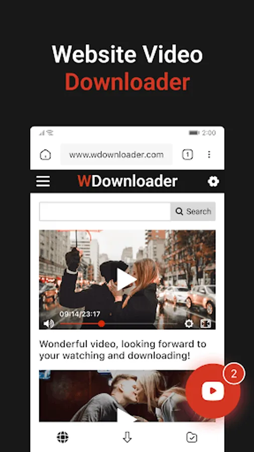 WDownloader gives you an exciting experience when you download videos from websites. You can browse any website you wish to download a video from. The downloader instantly detects videos while you are browsing. Preview the video first, tap to download fast at high speed, and play it offline.
