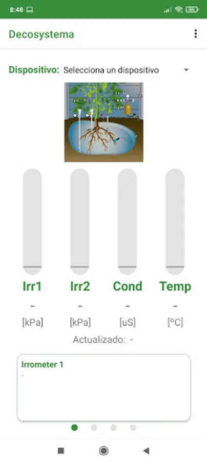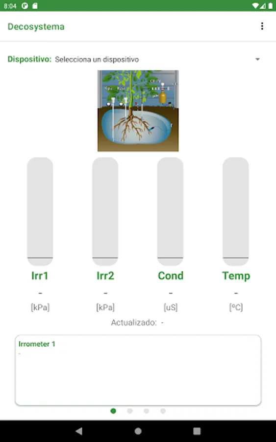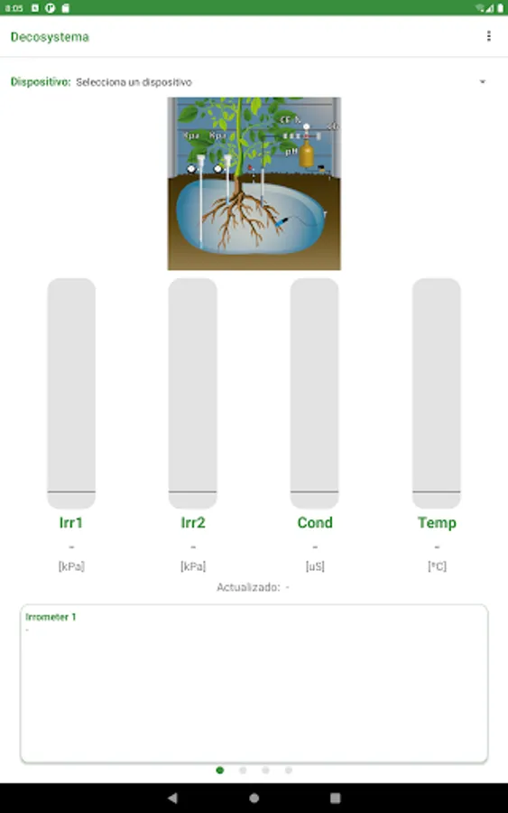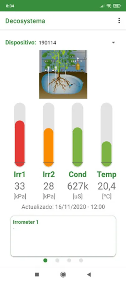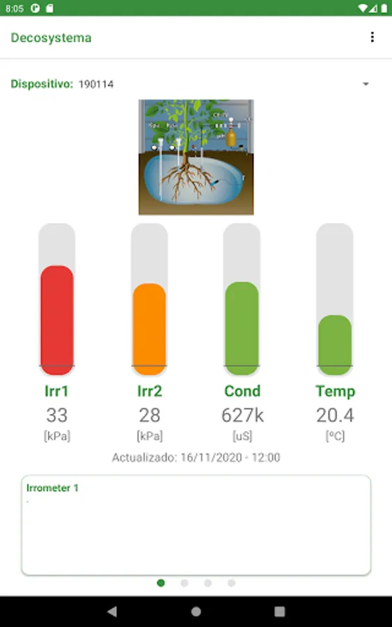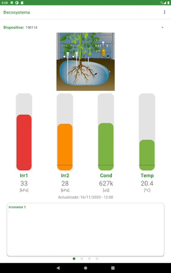 Control of the quality of the land for plantations: temperature, conductivity and two irrometers.