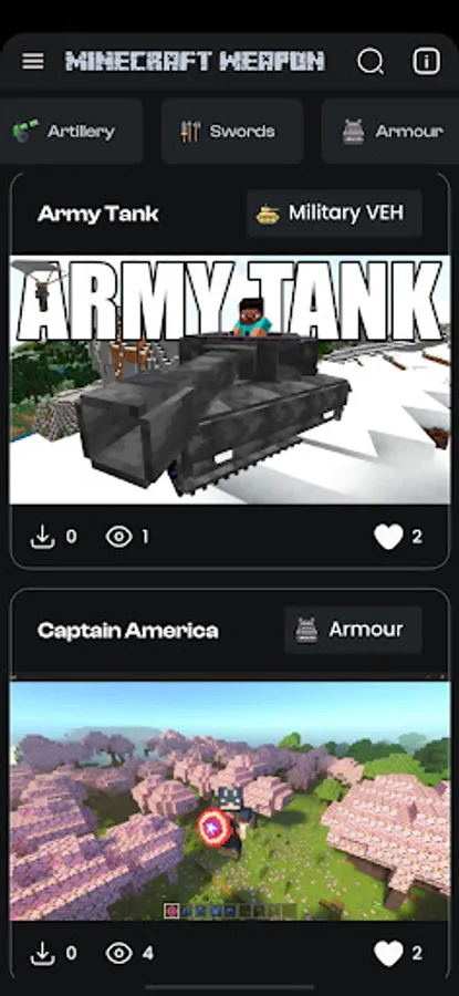 In the weapon mod for minecraft application you will find many different mcpe mods for every taste. We already have more than 100 of them and we regularly add new quality weapons addons.