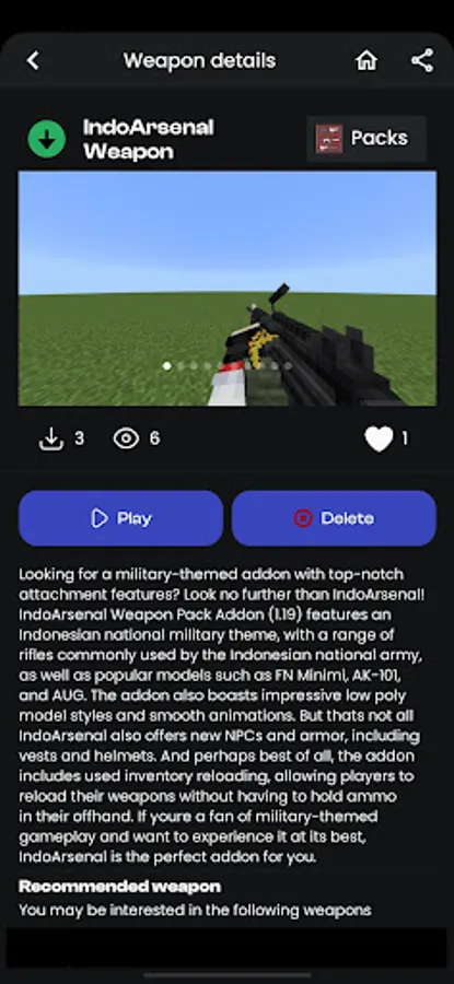 If you no longer need any of the weapon mods for minecraft, you can just as easily remove them from the app.