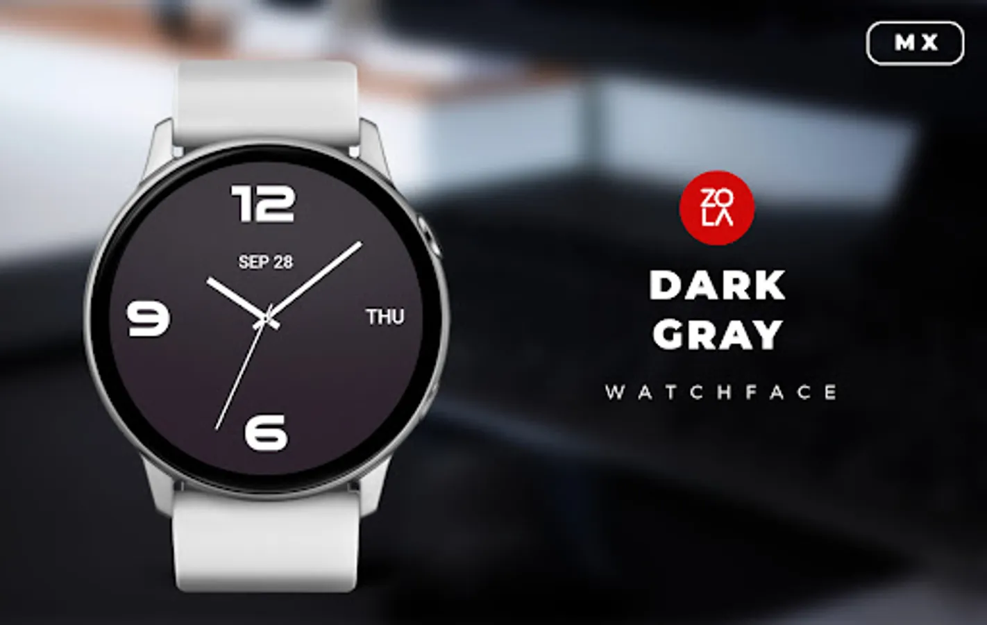 Get a sleek and stylish look with this Dark Gray MX Watch Face for Wear OS.