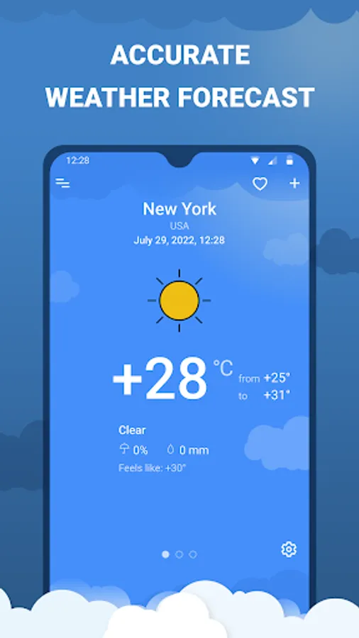 The app builds forecasts based on a variety of weather data and uses the most advanced algorithms to obtain the most accurate weather forecasts in terms of temperature in Celsius and Fahrenheit, precipitation, their types and amounts, atmospheric pressure, humidity, wind speed and direction.