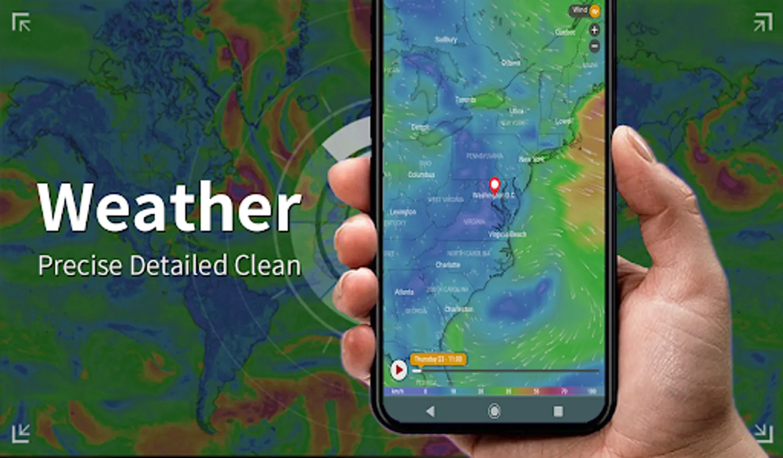 - Real-time weather radar foresees important weather conditions, traces the movement of cloud and tides