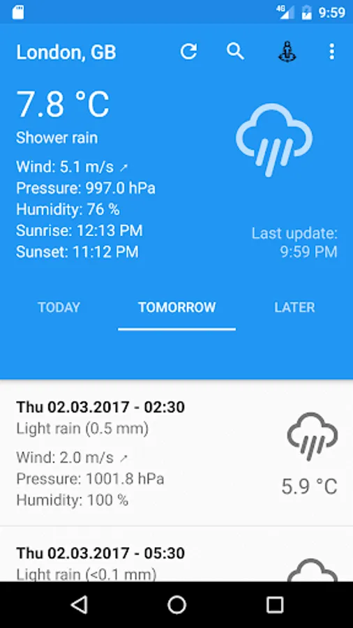 Weather Report including weather and temperature.with our app you can receive Weather report With just one click at your current location.