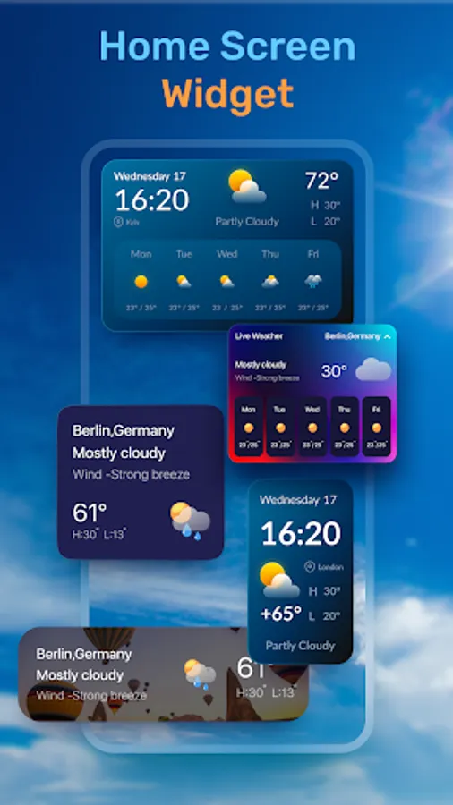 ☀️ Live Weather Widgetand Clock: Simplify your life with our widget, featuring the date, time, climate change, and a mini forecast for the next five days.