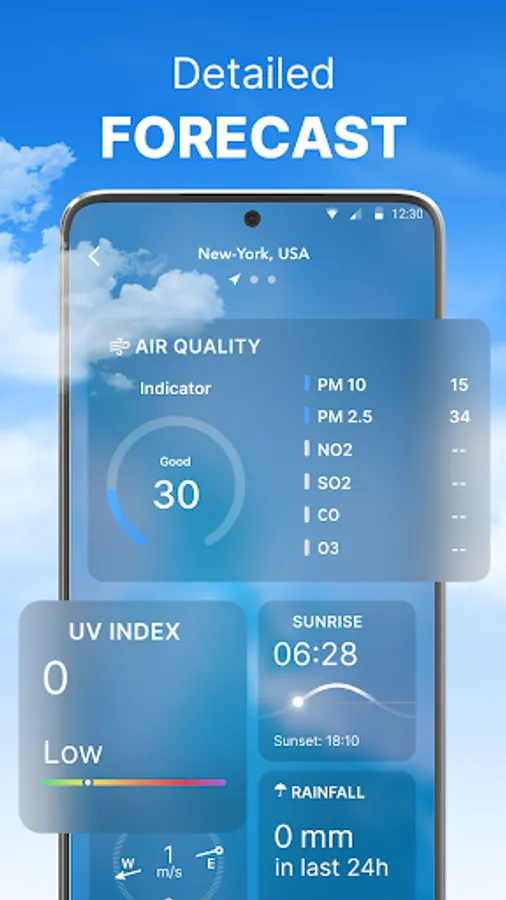 ☀️ Detailed Weather Information - Stay updated on crucial factors such as air quality, UV index, wind speed and direction, time of sunrise and sunset, precipitation levels, and humidity. Our app's comprehensive data empowers you to make informed decisions based on your surroundings.