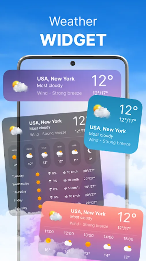 ☀️ Weather Widget with Clock and Date - Stay informed at a glance! The widget provides you with a quick overview of the current climatic conditions, time, and date, directly on your home screen. Get timely updates without even opening the app.