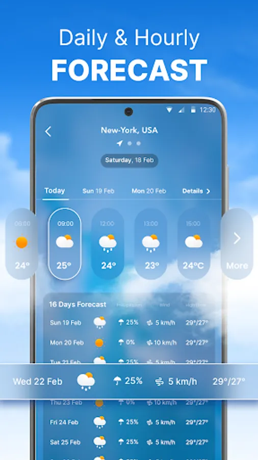 ☀️ 16-Day Weather Forecast - Plan your activities for the next two weeks with confidence! The application offers a comprehensive hourly or 16-day forecast that allows you to prepare for any upcoming climate changes. From sunny days to hurricanes, be prepared for what lies ahead.