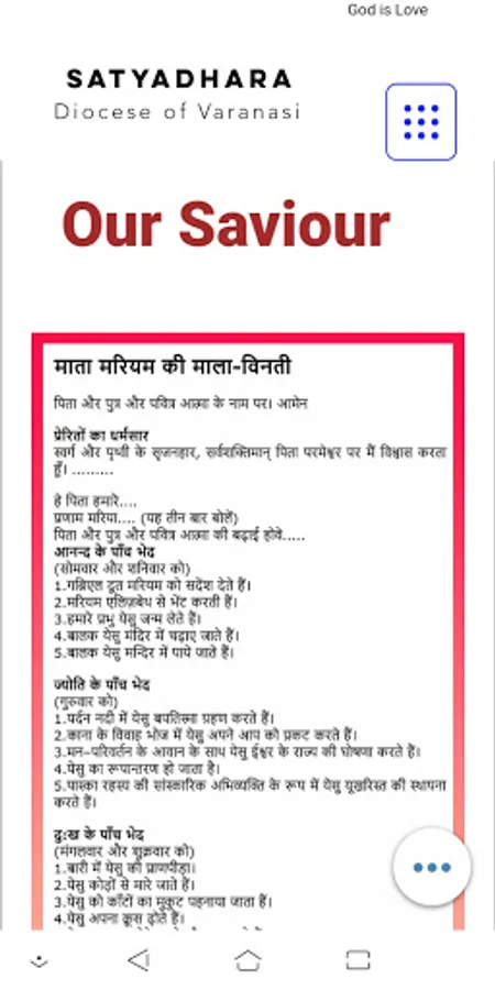 Satya Dhara Mobile app using for Catholic Prayerful Life.  This app is designed to help the Catholic believers conveniently to know about strengthen their faith in the Catholic Church and prayers.