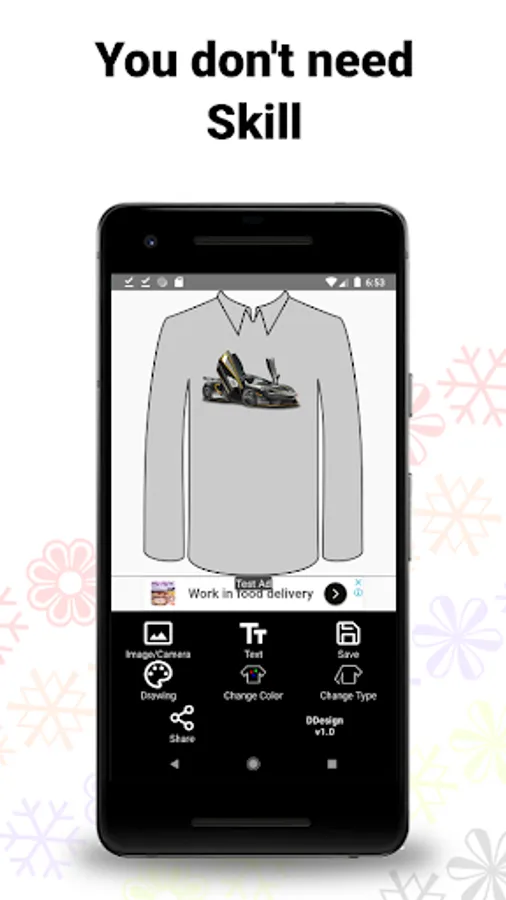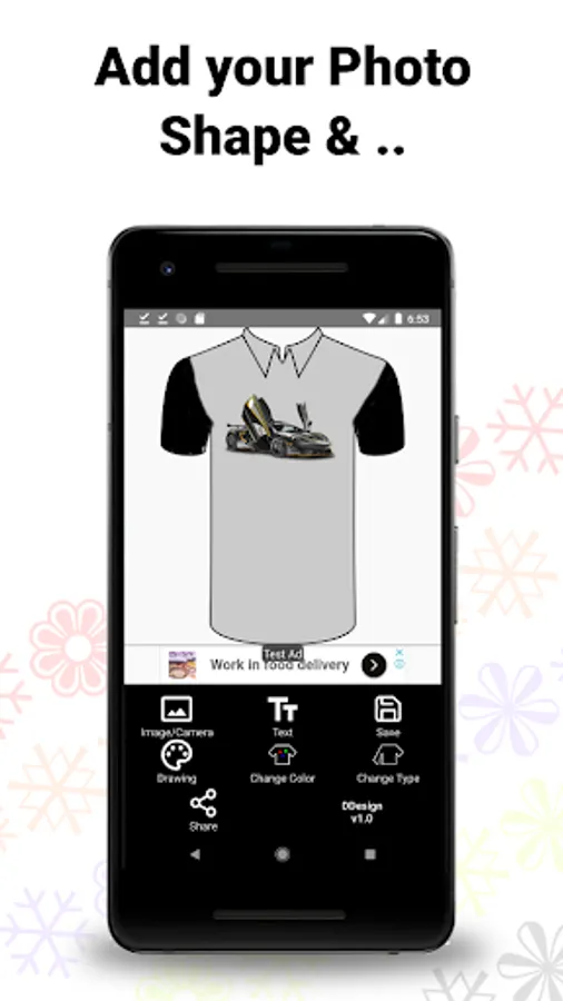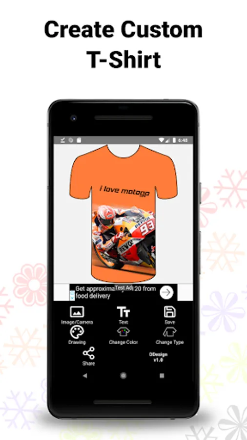 Mockos allows you to create a design for the t-shirt easily. You can create beautiful texts you can put on your t-shirt. Or, if you want to use images, you also can do that easily. With so many features, plus the t-shirt base image in this application, you can easily find out how the result will be in the end. And, you can do all of those complicated processes from your mobile device. This app is the simplest and easiest way to create the best t-shirt design.