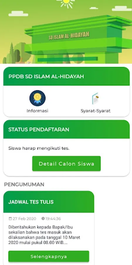 This application is used to register as a new student at SD Islam Al Hidayah.