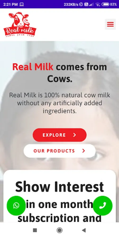 Real Milk provides a unique quality milk with a taste that you will love. Real Milk is produced in our own farm with no human touch involved. The cows are milked very carefully & hygienically in an automated machine. After the milk extraction, the milk goes through a well-organised process to make it 100% bacteria free. The end product that comes out of it is just pure, natural, healthy milk that is ready to be delivered all accross West Bengal.