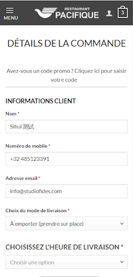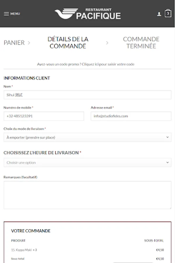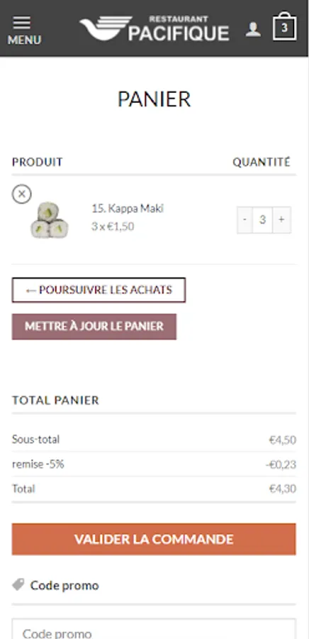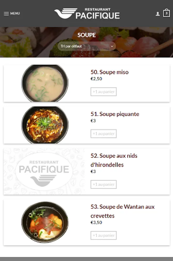 Easy and comfortable way to order food from Pacifique restaurant in COURCELLES.