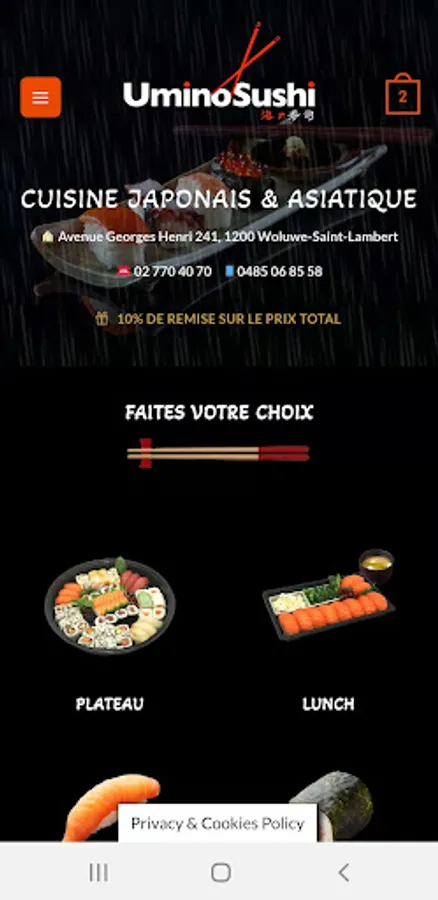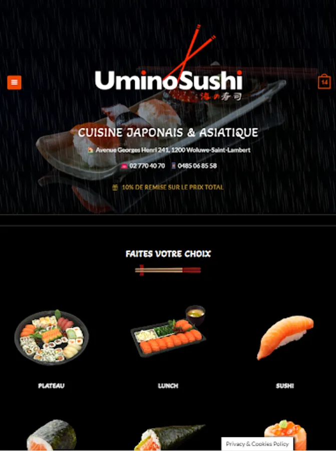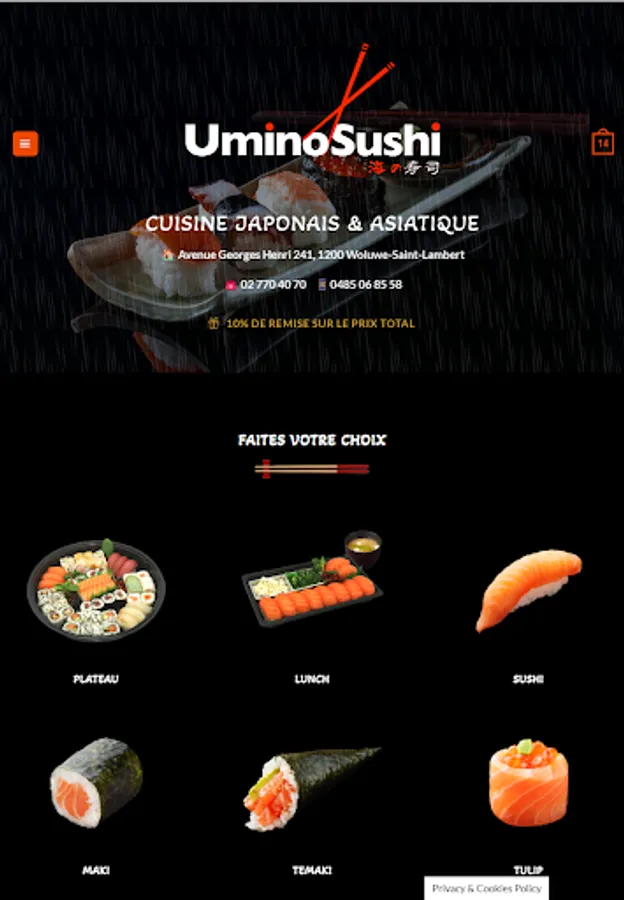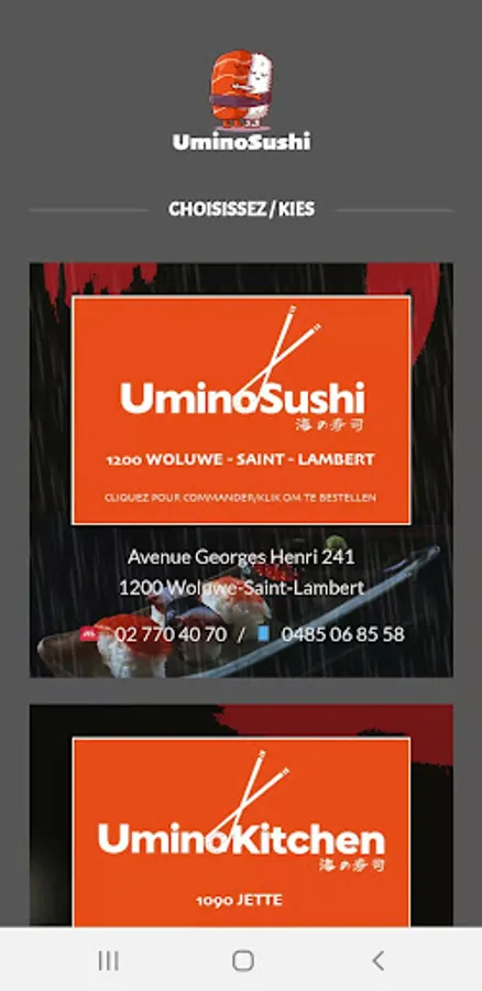 Easy and comfortable way to order food from "Umino Sushi" and "Umino Kitchen" restaurant in Woluwe-Saint-Lambert and Jette.