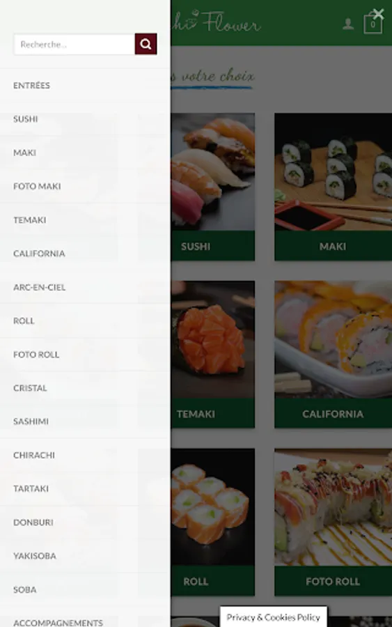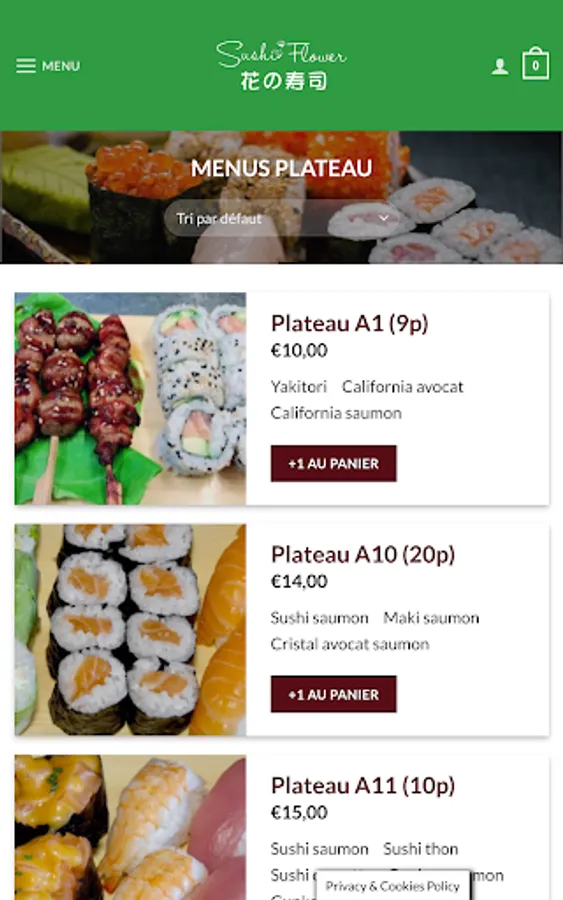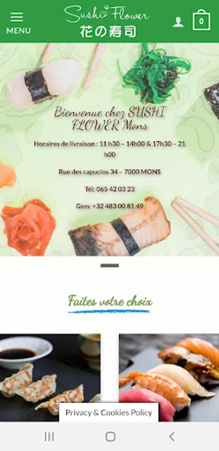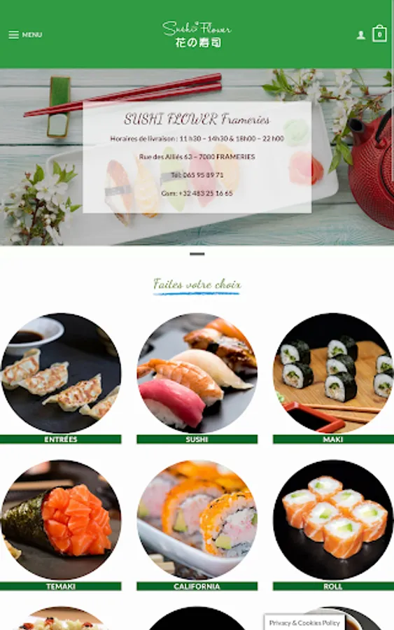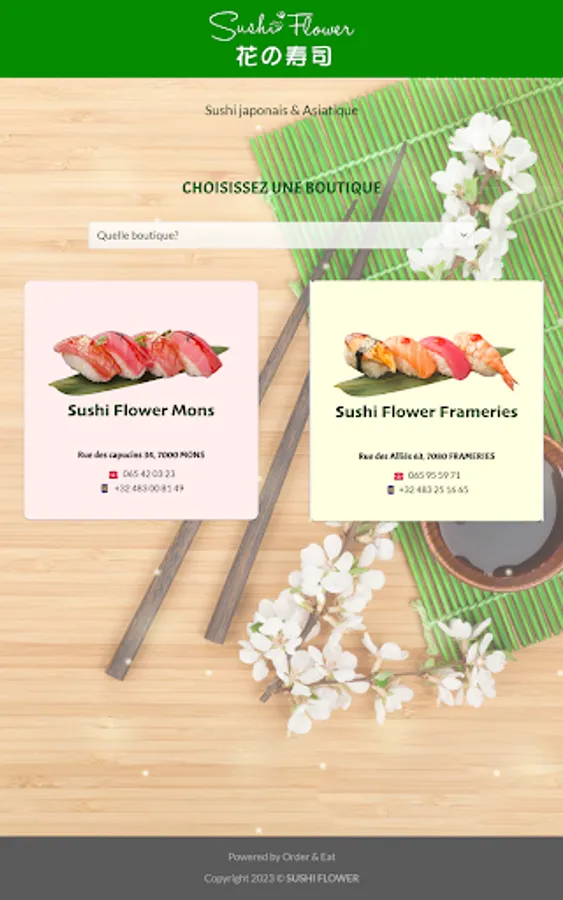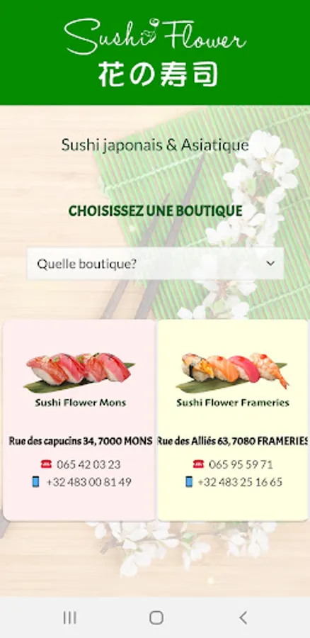 Un moyen simple et confortable de commander des plats dans les restaurants "Sushi Flower" de FRAMERIES et de Mons.