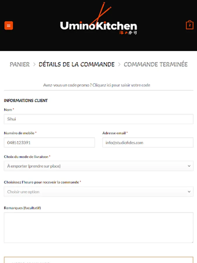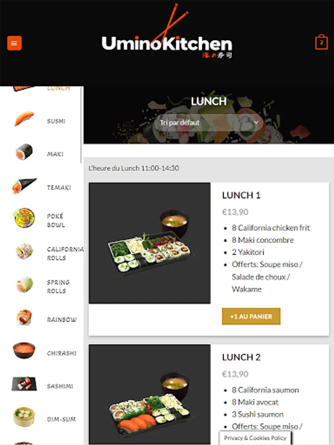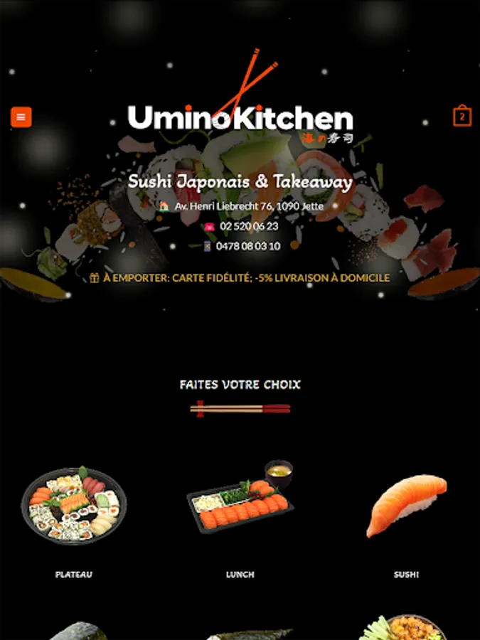 Easy and comfortable way to order food from "Umino Kitchen" restaurant in Jette.