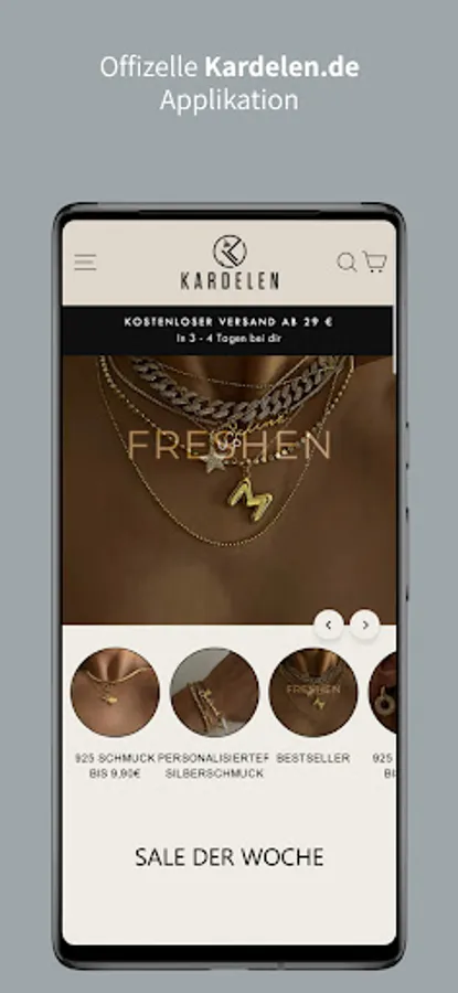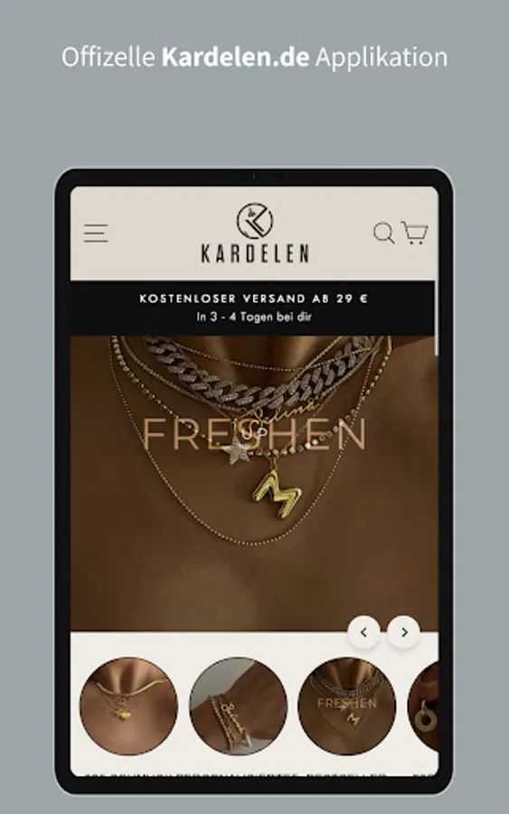 Install the Kardelen app now and take advantage of great offers that are otherwise not published. Discover jewelry, some of which is customizable, great gift ideas and other accessories such as Watches.