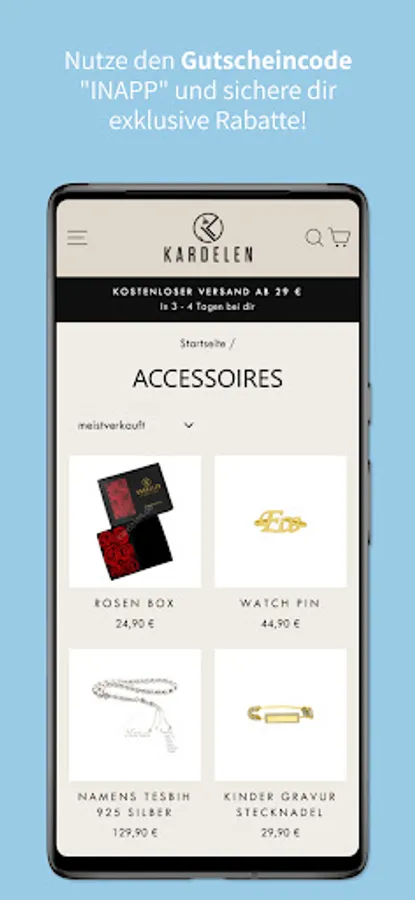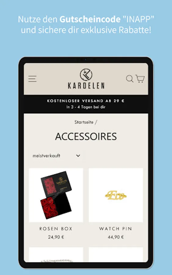 Do you like the Kardeln app? Then please rate us here in the Play Store. We read all the news and reviews and are constantly striving to offer you a better shopping experience.
