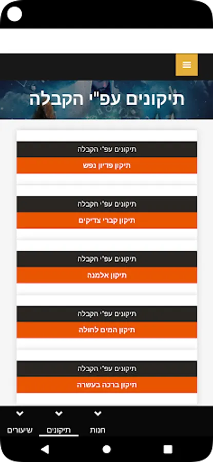 In the application you can watch Kabbalah classes, review corrections and an option to purchase Kabbalah products
