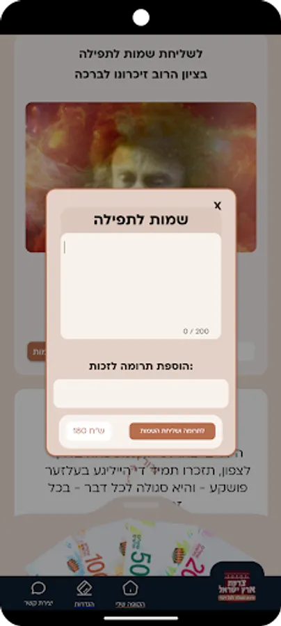 It is also possible to send names for prayer in the Holy Zion of Mahara from Belza Zi'a