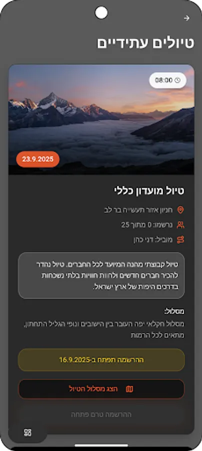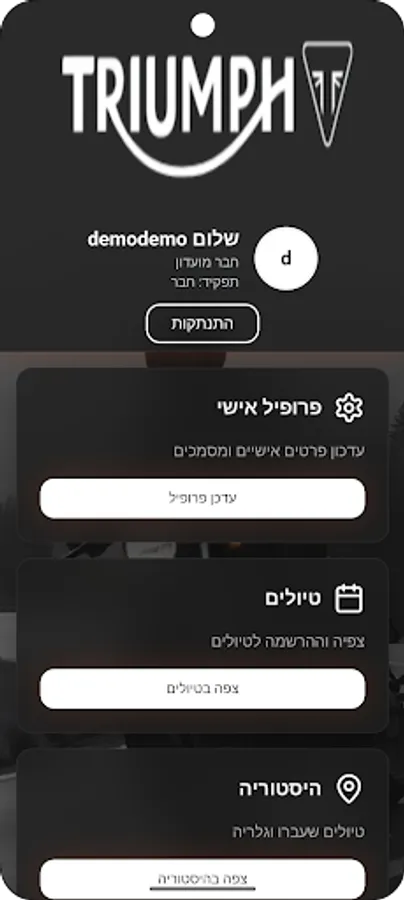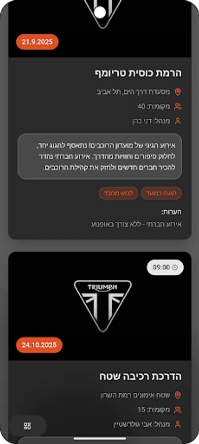 In the application you can register for trips and events, receive information and always be updated on the various activities for owners of Triumph motorcycles in Israel.