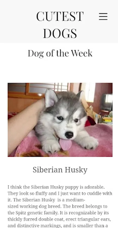 I've picked the cutest dog pictures I can find... and each week I will post a new dog of the week. In each dog of the week I will highlight a different breed or a different dog story. Also, there are pages about different dog breeds including Pomeranians, Retrievers, and more. I hope you enjoy!