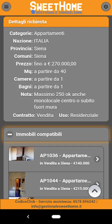 Mobile application for real estate agencies using SweetHome real estate management. You can access your property catalog, requests, address book and appointments, on the go and at any time, always updated in real time with your office.