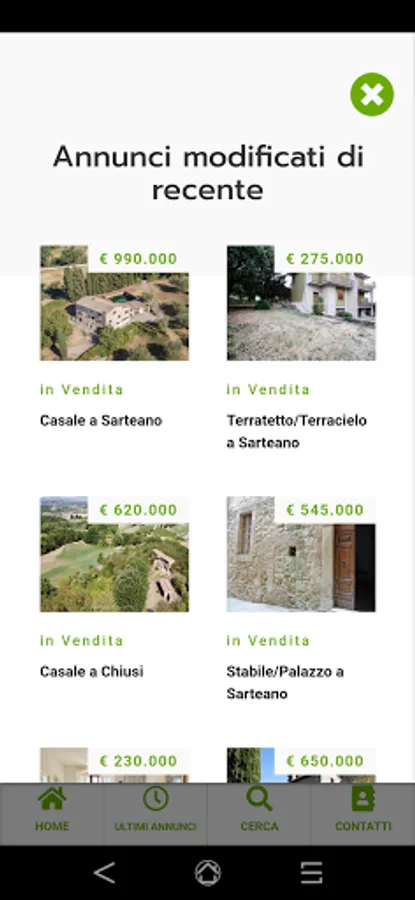 Do not miss the real estate offers of the Morgantini Real Estate Agency in Sarteano (SI) always at hand. You will be able to view the latest ads inserted, those recently modified, those whose price is falling!