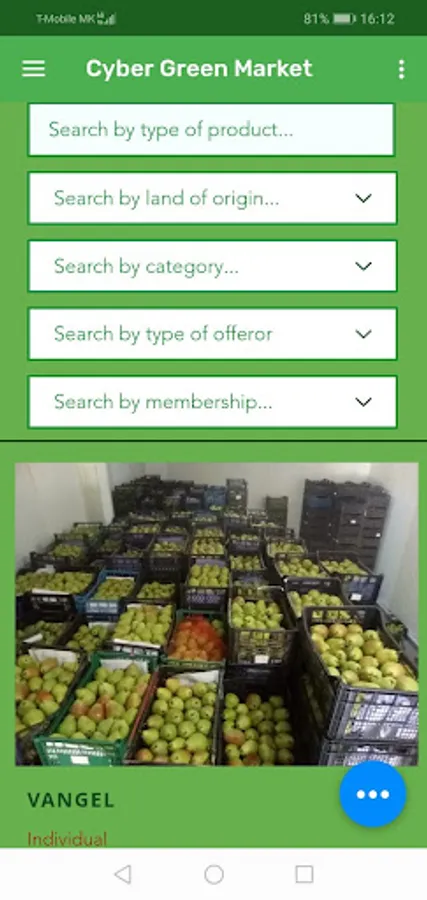 The Cyber Green Market, apart from being a web platform, aims, like any other realworld marketplaces, to provide conditions and bring together, in one place, not only the supply and demand of agricultural products from all over the world - which is the main business of any classical market, but to acquire and bring together all other entities that have at least the small interest in working with agricultural products, starting from the supply and demand of agricultural machinery, through packaging and transport services, ending with farm and crop insurances, private pensions for farmers, and local guide services and mediation.