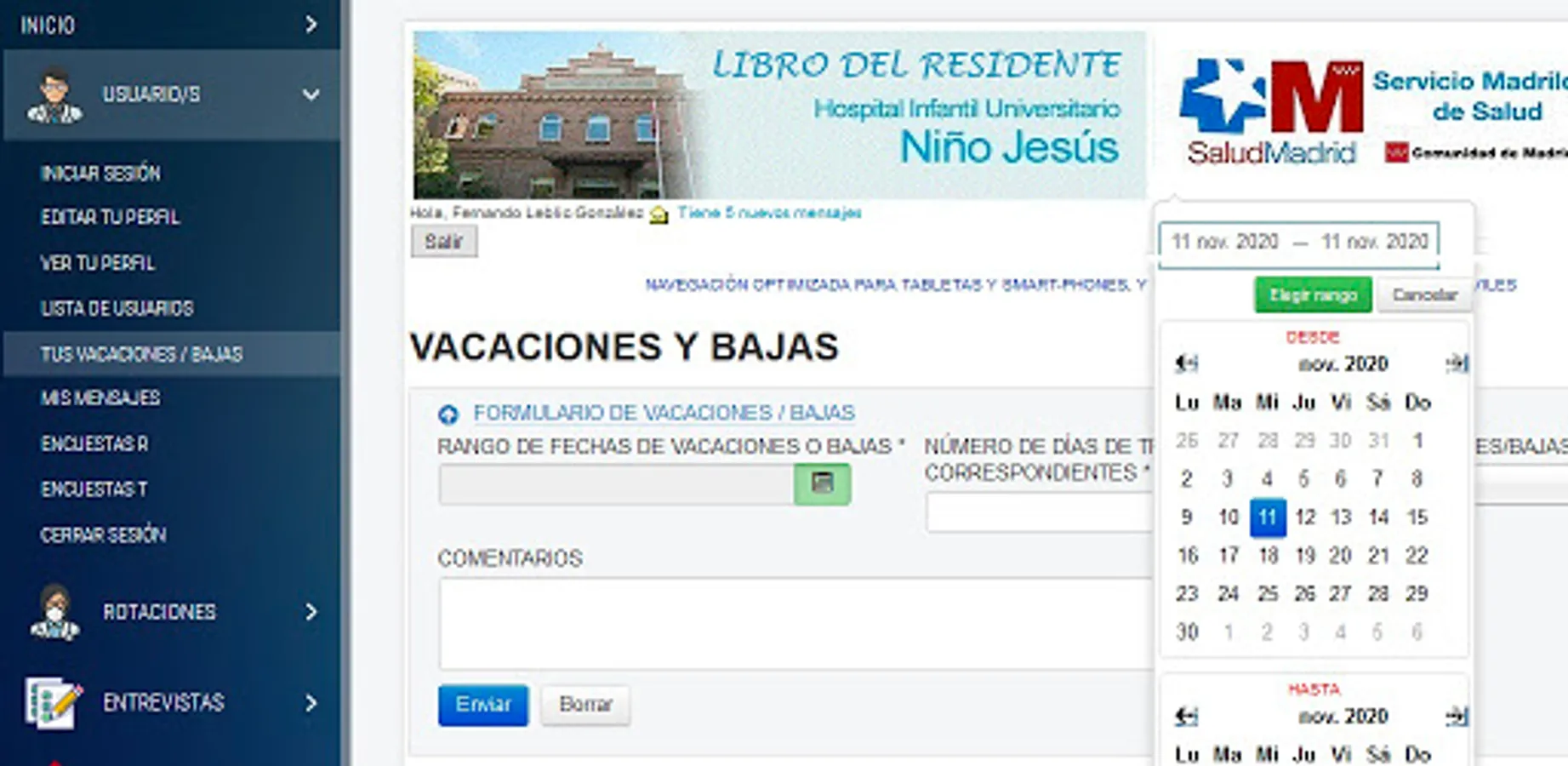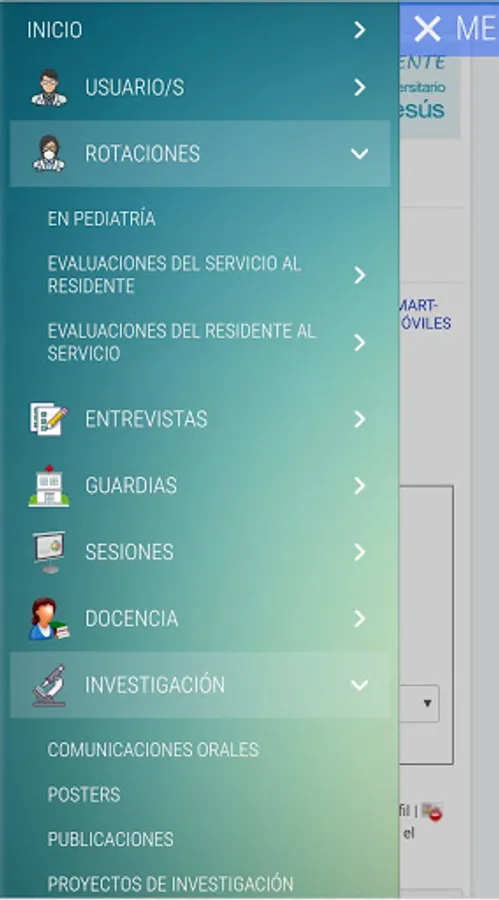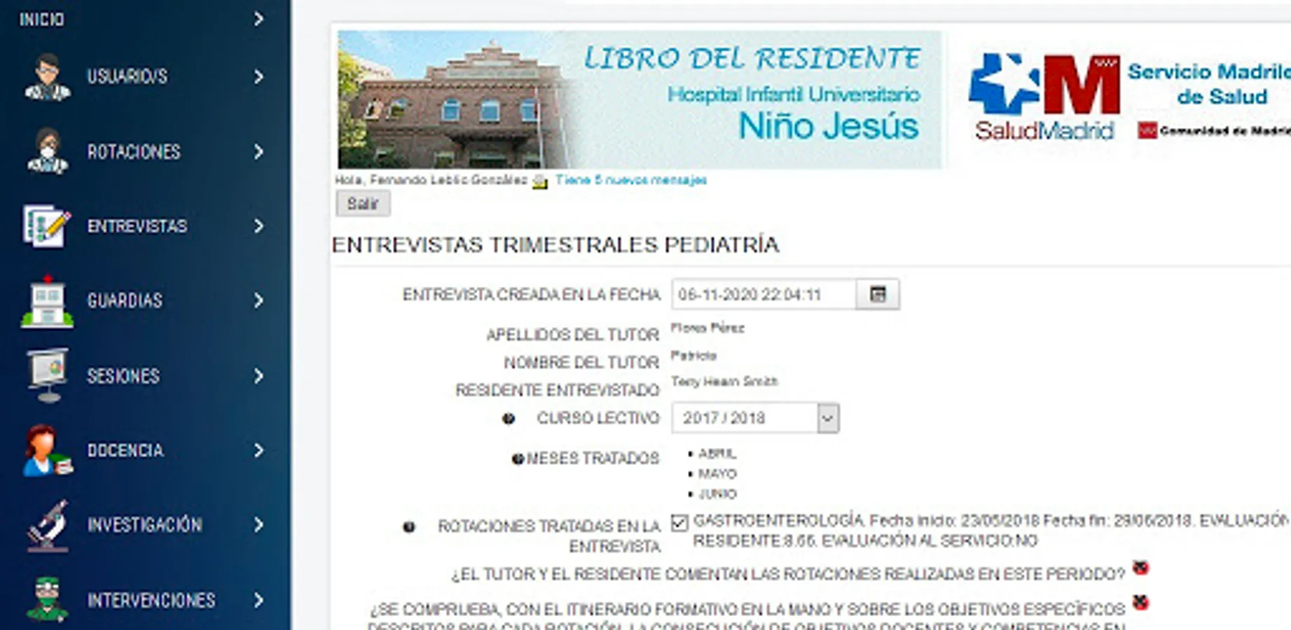 Sistema Online de gestión de rotaciones, guardias, sesiones, evaluaciones, intervenciones, entrevistas,... etc, que serán compartidas con los correspondientes tutores, coordinadores de área, coordinador docente, etc.