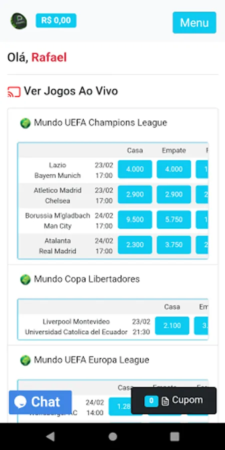 Hundreds of events daily, several markets available as over, under, both, goals, cards, corners, and more.