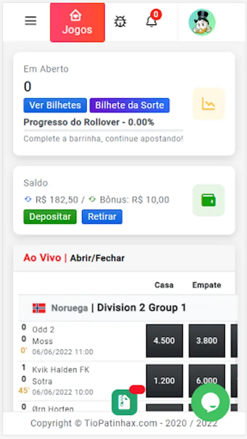 Futebol, basquete, tênis, vôlei, baseball, cricket, e muitos outros esportes para você se divertir dando os seus melhores palpites. Saques e depósitos 24h instantâneos via PIX.