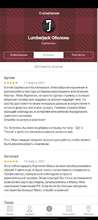 Also, upon registration, you will receive a personal account in the Lumberjack barbershop