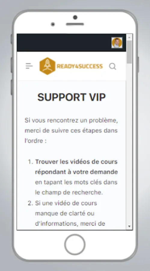With Ready4Success, you have an individualized member area to access all your lessons, masterclasses and replays of coaching sessions, all in one convenient place. Wherever you are in the world or on vacation, our application allows you to keep in touch with our inspiring community, without depending on the vagaries of social networks and their algorithms.