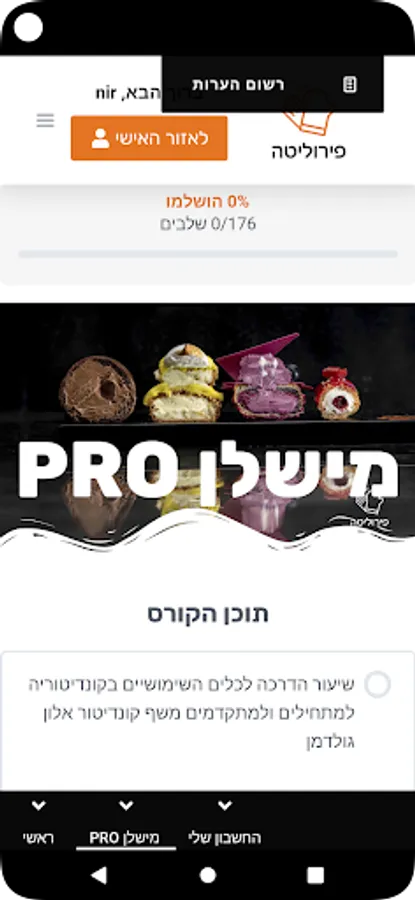The official application of Pyrolita that coordinates all the best courses in the field of confectionery in Israel