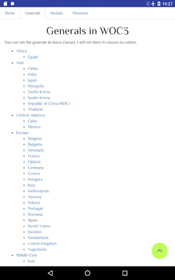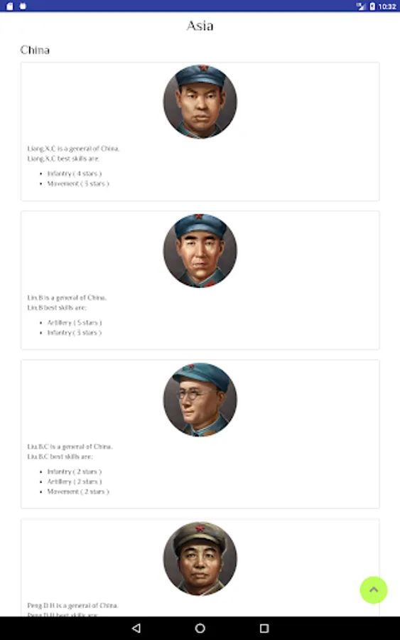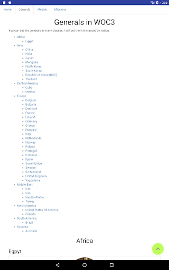 Here can you find the info of the generals of World Conqueror 3 ranked by nation.