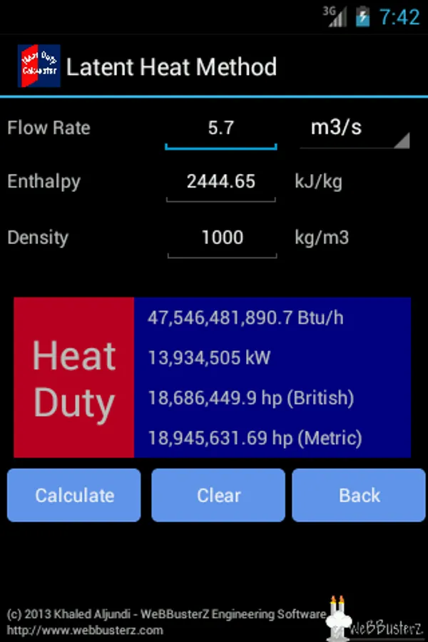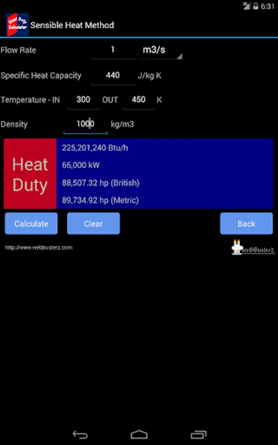 Heat duty calculator allows you to calculate the duty or heat rate for sensible heat transfer and latent heat transfer. The flow rate can be specified as volumetric or mass flow rate. Density input is required when the flow rate is specified by volume.