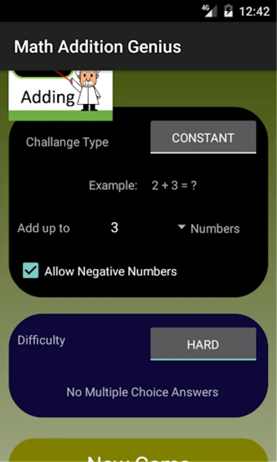 + Users can also specify the numbers range that the math additions are generated within, this feature allows flexibility in so that the number additions are not generated with very high numbers.