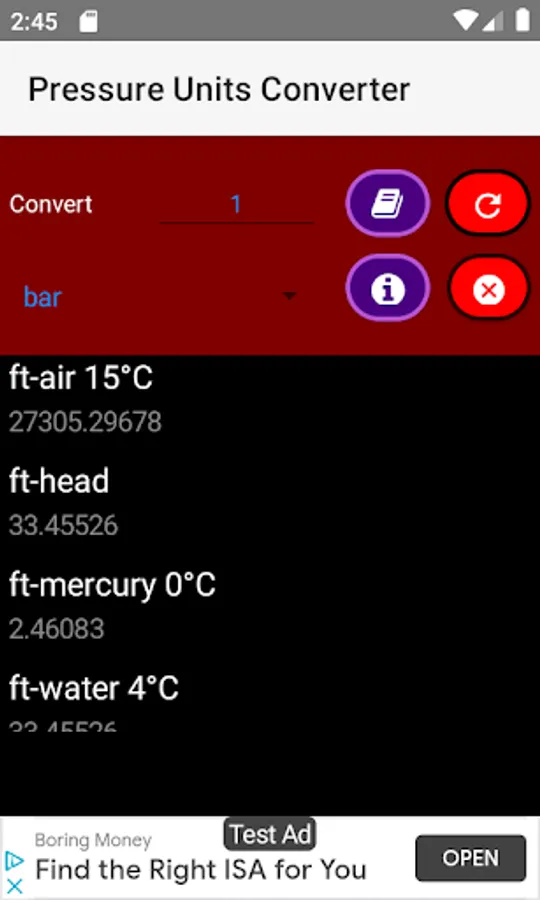 Convert 41 pressure units using this app. The converter can convert between the units listed below:
