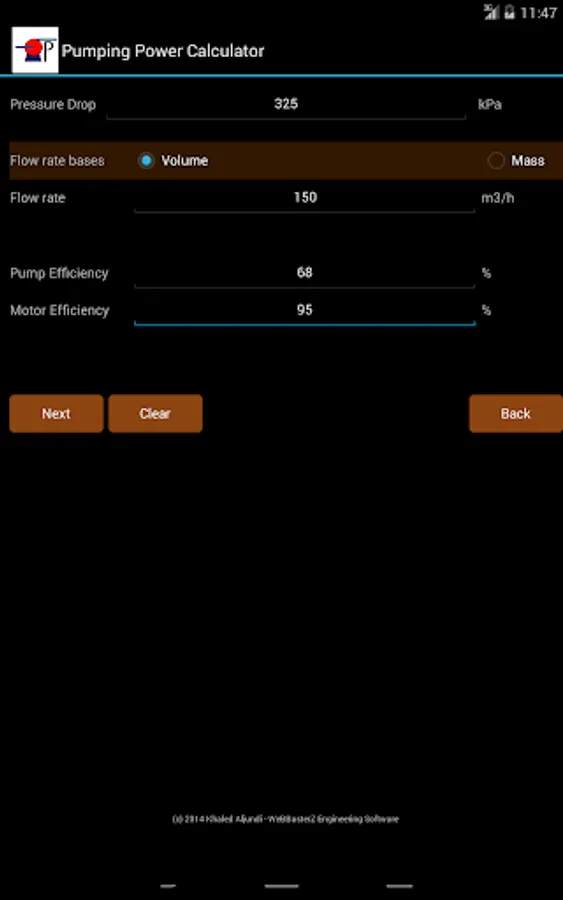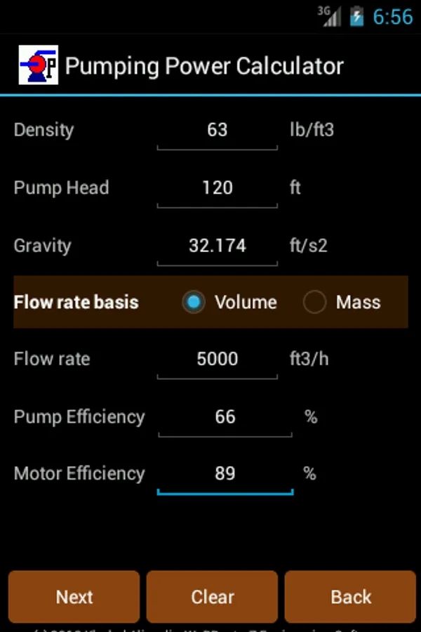 Pumping power calculator will accept input in SI and Metric measurement units and will calculate the following: