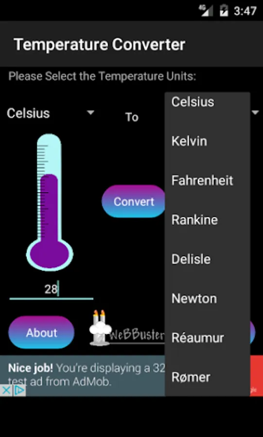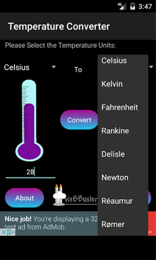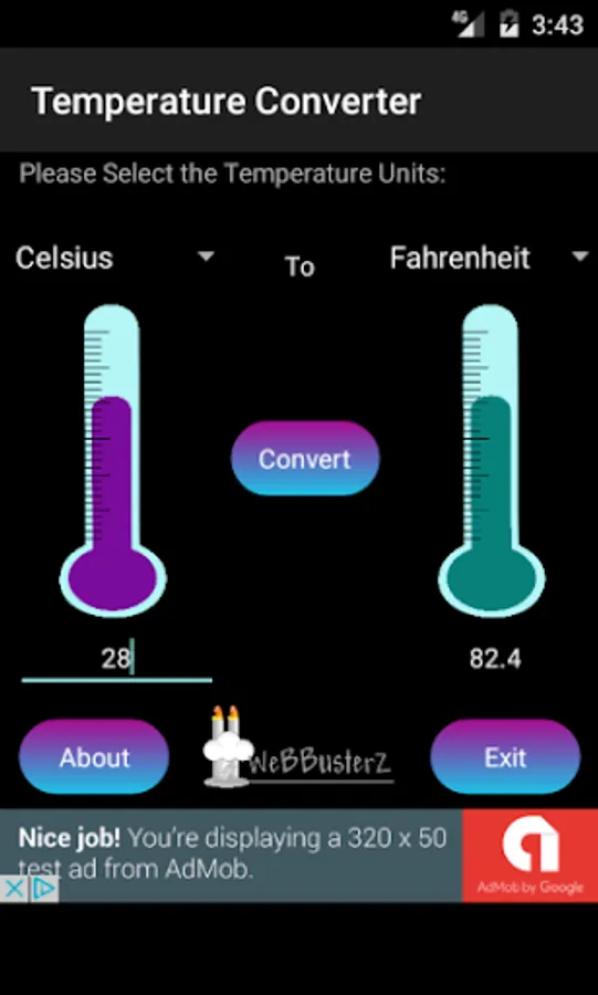 To support the development of mobile applications there is one banner advert in this application, the adverts are only shown if you are connected to the internet, you DON'T need to be connected to the internet to use this temperature converter at it will also function fully offline.