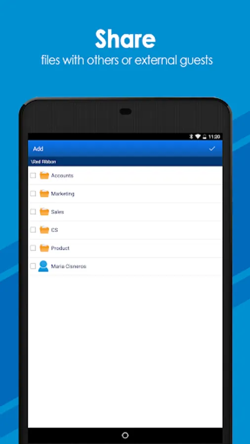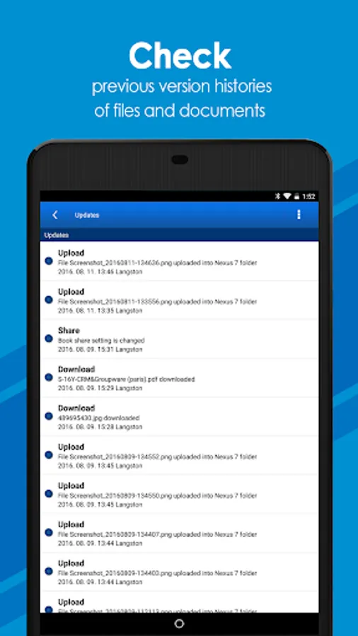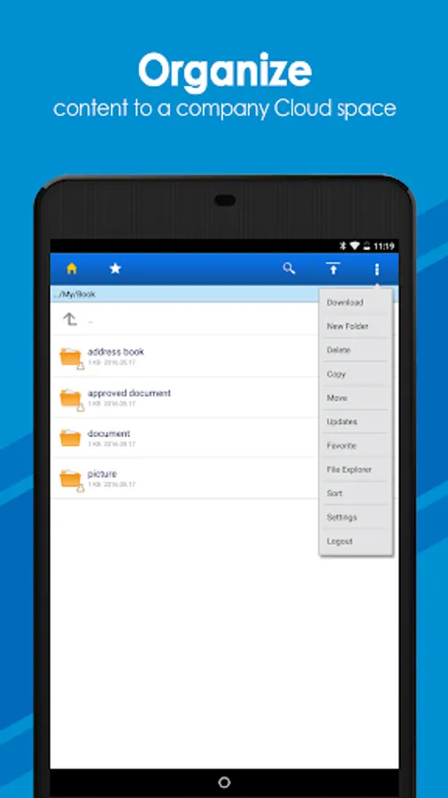 • Access: View, preview, and download files from company, private, or shared folders to your mobile