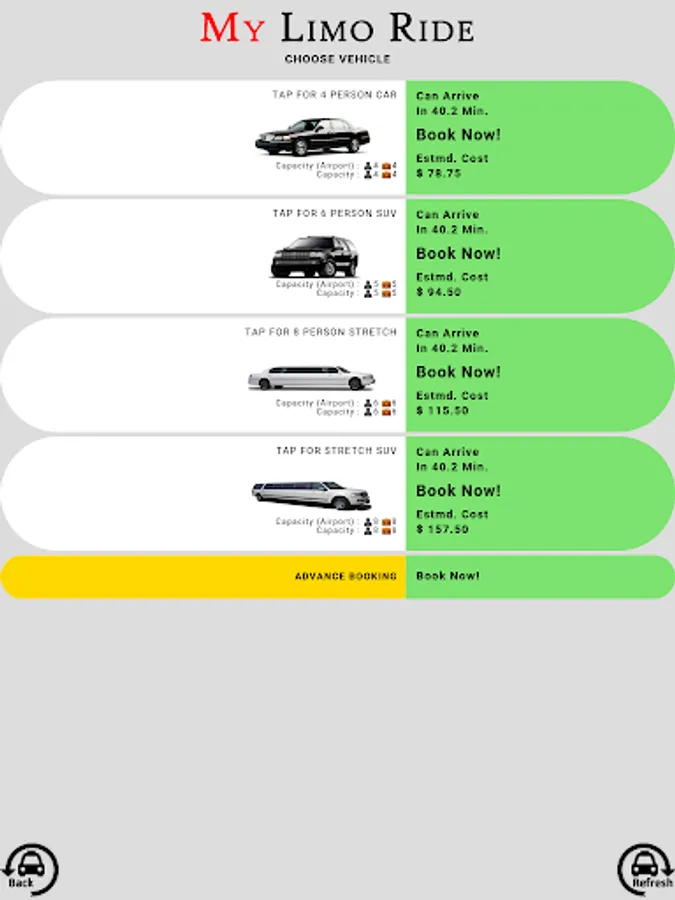 Compare "My Limo Ride" Prices with taxi rates side by side.