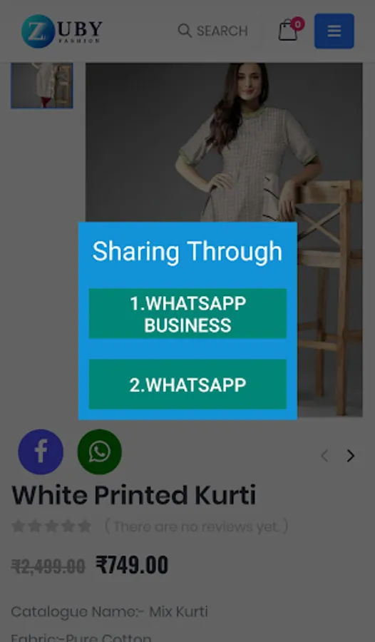 Zuby Fashion is an online shopping website and app. Buy Exclusive Verity of Casual, Designer Clothing for women. Zuby Fashion is also an reselling based app you can start reselling products from the app to directly customer's whatsapp and order will be dispatch from Zuby Fashion.