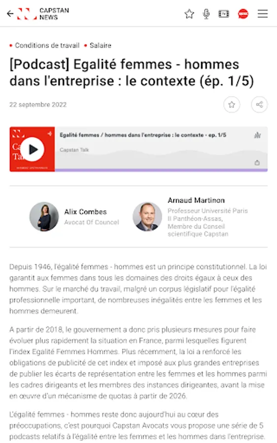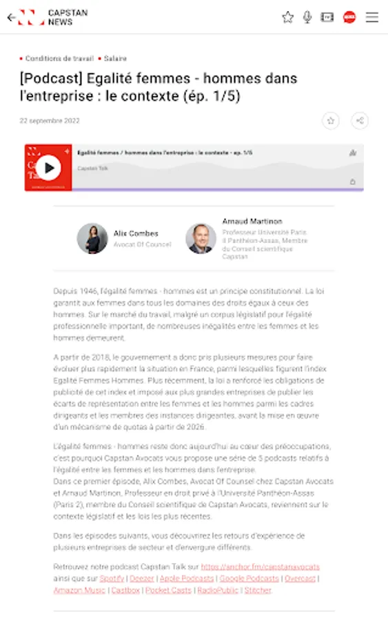 Also find Capstan Talk, the podcast of Captan Avocats, which gives concrete relief to subjects of labor law and labor relations, as well as the analyzes of the lawyers of Capstan Avocats in Capstan Tv.